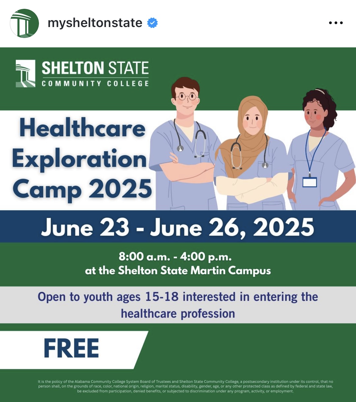 I created a social media graphic to promote Shelton State’s Healthcare Exploration Camp 2025, aimed at students interested in medical careers. The design highlights camp dates and registration info to spark interest and drive engagement. Bright visuals and a professional layout were used to capture attention and reflect the exciting, hands-on learning experience the camp offers.